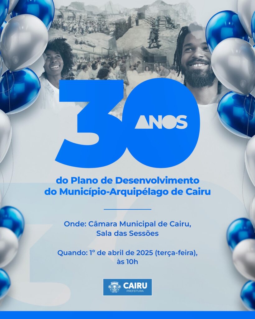 • O quê: Celebração dos 30 anos do Plano de Desenvolvimento do Arquipélago de Cairu