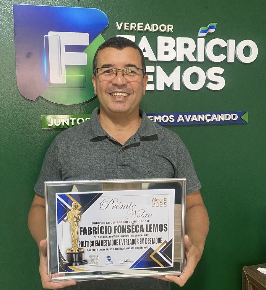 Entre os destaques deste ano, o vereador Fabrício Lemos foi eleito nas categorias “Político em Destaque” e “Vereador em Destaque”, reafirmando o reconhecimento de seu trabalho e atuação junto à comunidade valenciana.