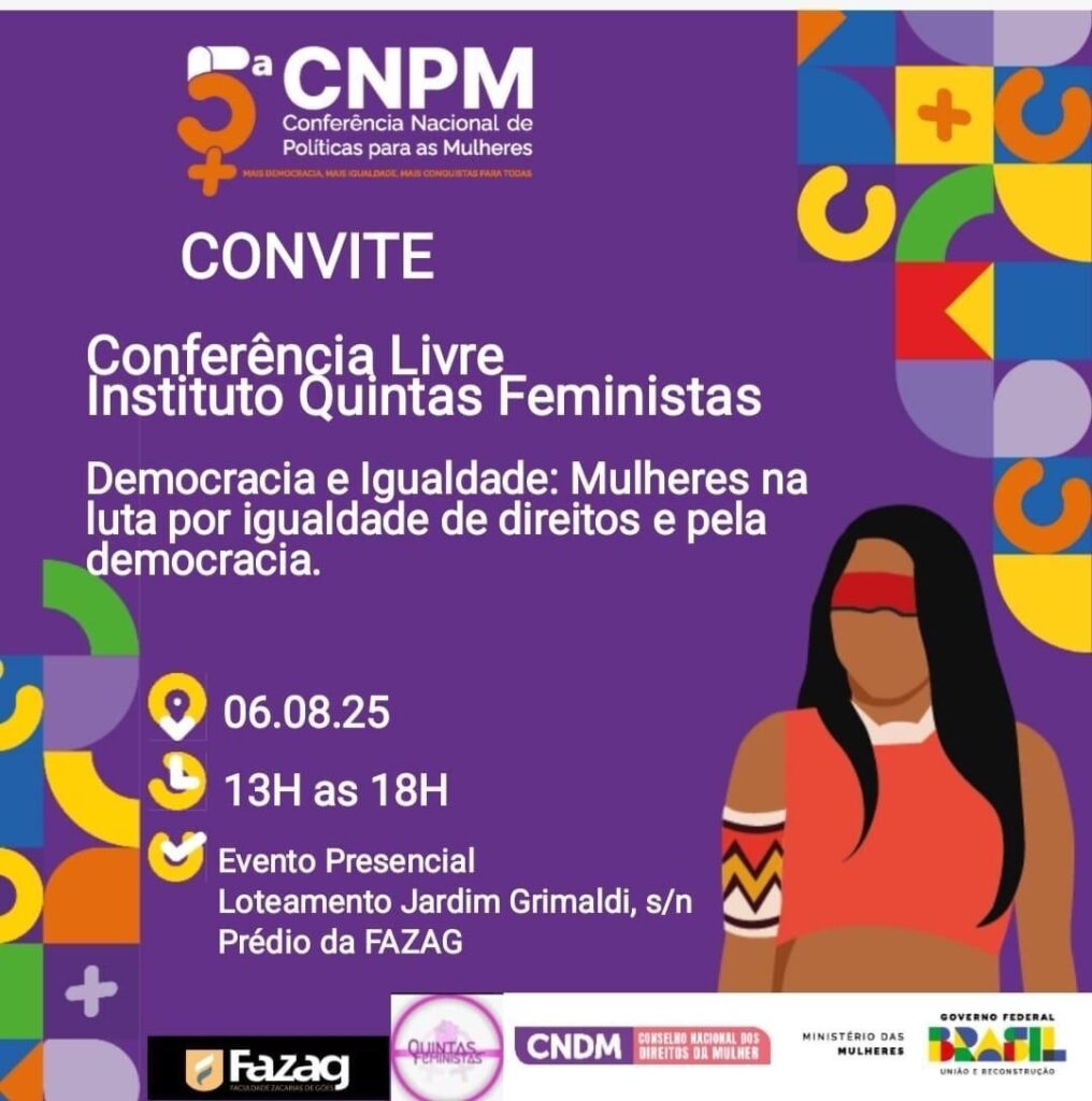 O Instituto Quintas Feministas realiza, nesta quarta-feira (6), a sua 1ª Conferência Livre no município de Valença, localizado no Território de Identidade Baixo Sul da Bahia. O evento acontecerá das 13h às 18h, na sede da Faculdade Zacarias de Góes (FAZAG), e reunirá mulheres de diversas áreas em um espaço de escuta, diálogo e construção coletiva.